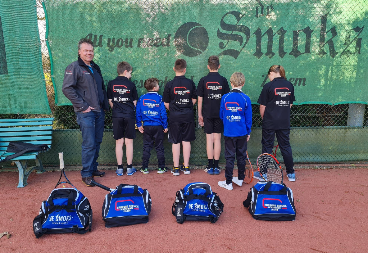 Donderdag 17 maart kreeg ons oranje-jeugdteam een prachtig nieuw tenue uitgereikt op ons tennispark aan de Priesterinkdijk. Dit is mogelijk gemaakt door de sponsoren Caravan Service Achterhoek en Eeterij en Tapperij De Smoks te Zelhem. Dennis, Vince, Finn, Noud, Sem, Emily en Ilvie zullen vanaf nu alle trainingen en toernooien aantreden in deze mooie outfit. Trots poseerden zij op de foto in hun nieuwe kleding al ware het al profs! De jeugdcommissie en het bestuur van LTC Zelhem bedankt de sponsoren voor dit genereuze gebaar van de sponsoren.