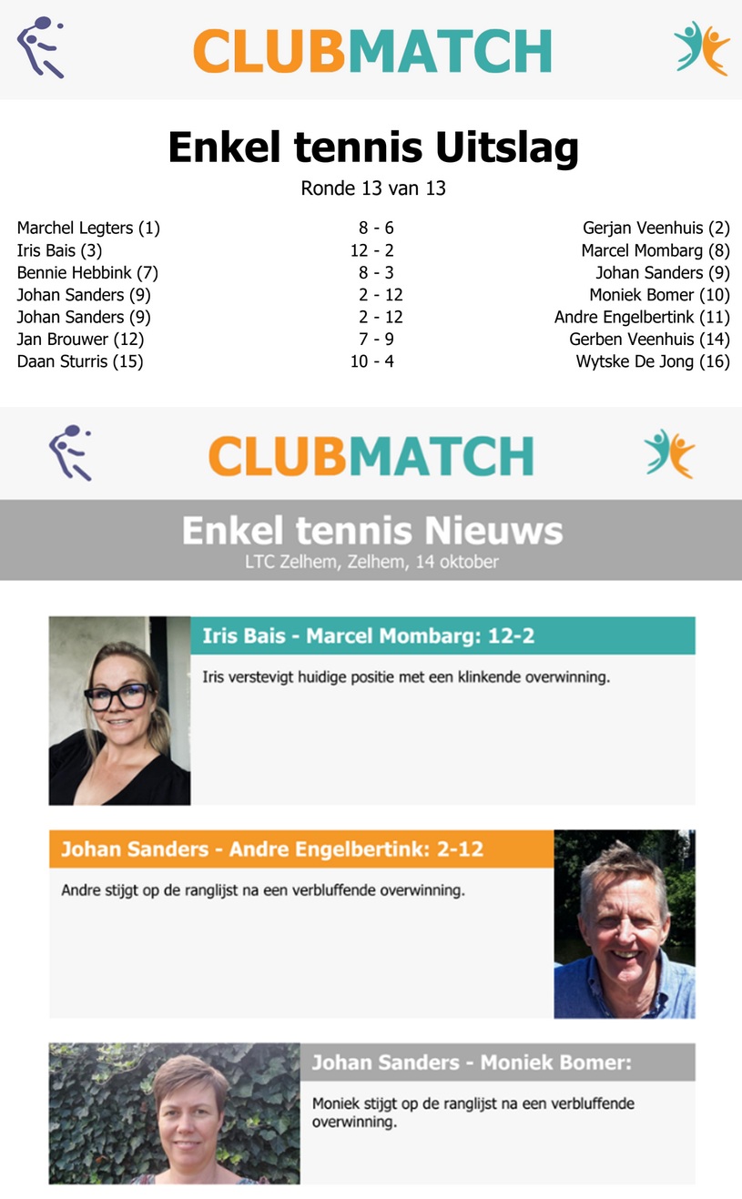 Alle resultaten van de LTC Zelhem enkel tennisladder Zomer 2025 zijn verwerkt. Er zijn in totaal 78 wedstrijden gespeeld door 19 spelers, een gemiddelde van 8 wedstrijden per speler en een opkomst van 83%.